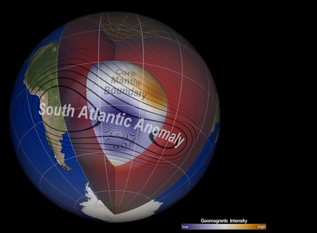 For example, some of the navigation systems used by the Federal Aviation Administration, and aids for landing of aircraft that are developed in the US or Europe, do not work as well in South America because of the SAA. So, there is a research focus in South America to better characterize and understand the SAA and its impacts on ground systems. The SAA is also an interesting and challenging geomagnetic problem.