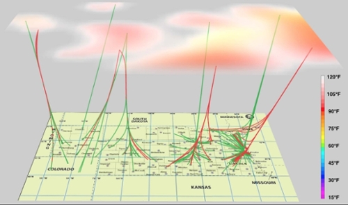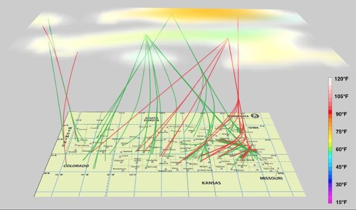 The team started by using a clustering algorithm to extract different weather patterns from the climate simulation. Yu’s colleague Jun Wang, previously on faculty at UNL, now at the at the ran the simulation using the supercomputing resources at the at UNL.
